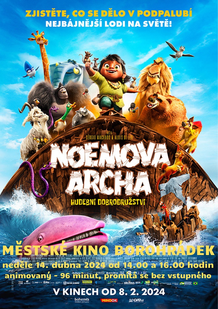 Městské kino promítá v neděli 14. dubna 2024 od 14 a od 16 hodin brazilský animovaný dobrodružný muzikál pro děti i dospělé Noemova archa. Vstup volný.