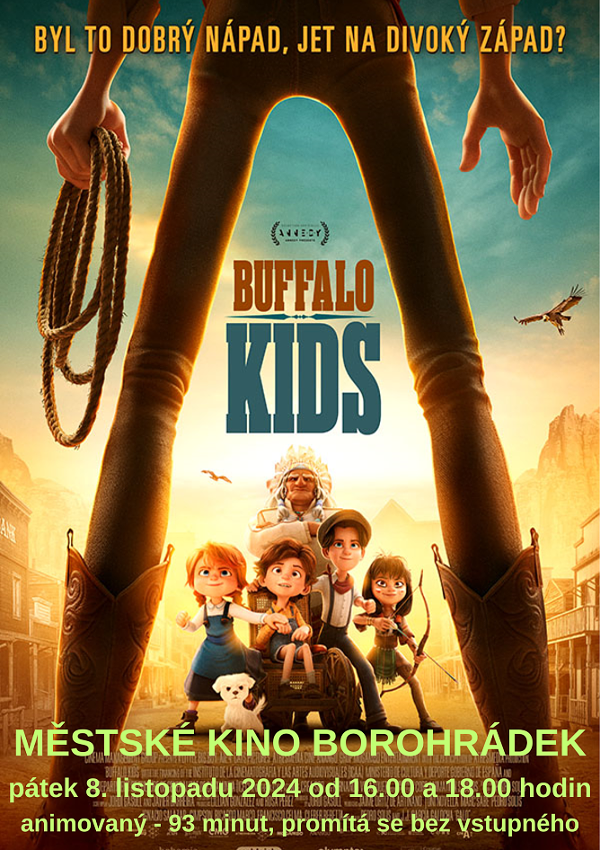 V pátek 8. listopadu 2024 od 16 a 18 hodin se bude v městském kině v Borohrádku promítat dobrodružný animovaný film pro děti Buffalo Kids. Vstup volný.