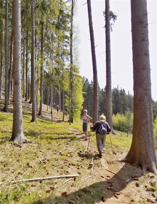 V sobotu 20. dubna 2019 jsme se někteří vydali opět s kosteleckými turisty na pěší výlet. Tentokrát byl naším cílem Hrádeček u Trutnova. Vyjeli v docela studeném ránu vláčkem do Týniště nad Orlicí, kde jsme se setkali s kosteleckými. Přestupovali jsme ještě několikrát až jsme vystoupili na železniční zastávce Mladé Buky. Tady jsme vyslechli historii tohoto městyse, která byla velice zajímavá. Vyšli jsme až ke kostelu, kde jsme se společně vyfotili a pokračovali okolo golfového hřiště až ke Hrádečku, osadě, kde měl svou milovanou chalupu exprezident Václav Havel. Pokračovali jsme výstupem na hrad Břečtejn. Odtud jsme se vydali okolo Pekelských rybníků a pokračovali dosti náročným výstupem na Pekelský vrch. Mezitím sluníčko zcela ovládlo nádherně blankytnou oblohu a provázelo nás na skalní útvar Baba, prošli jsme Volanov a už nás přivítal Trutnov, kde jsme výborně poobědvali v restauraci Pivovar, kterou můžeme vřele doporučit. A už jsme docela museli spěchat, abychom stihli vláček. Celkem se pochodu účastnilo 28 pochodujících, jeden čtyřnohý kamarád a ušli jsme 16 km. Byl to opět krásně prožitý den plný sluníčka a nádherných dojmů.